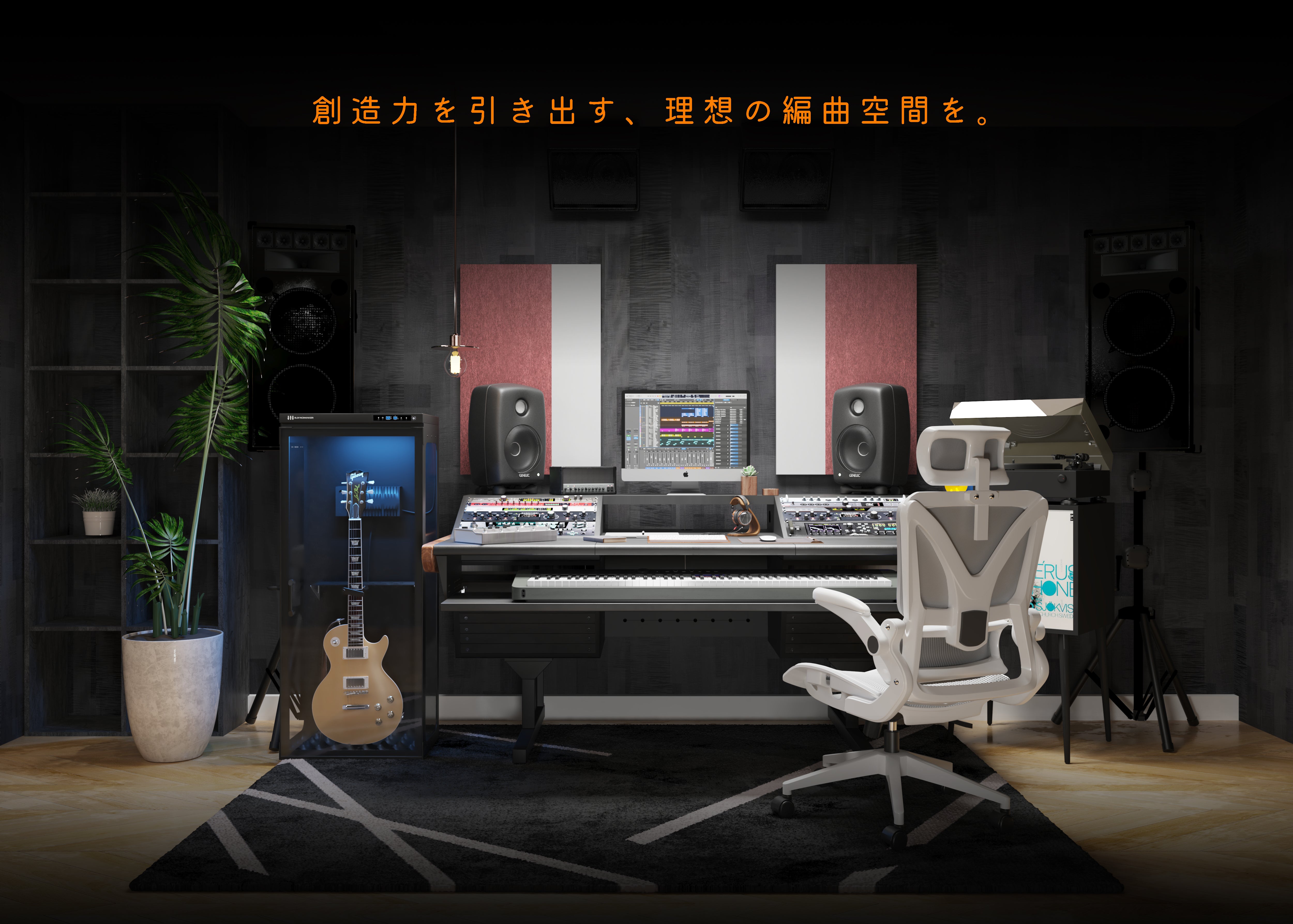 Soundmakerでは、クリエイターが自宅で快適かつ効率的に音楽制作に集中できるよう、人間工学に基づく設計と現代的なデザインを融合した空間を提供しています。創作活動を最大限にサポートいたします。